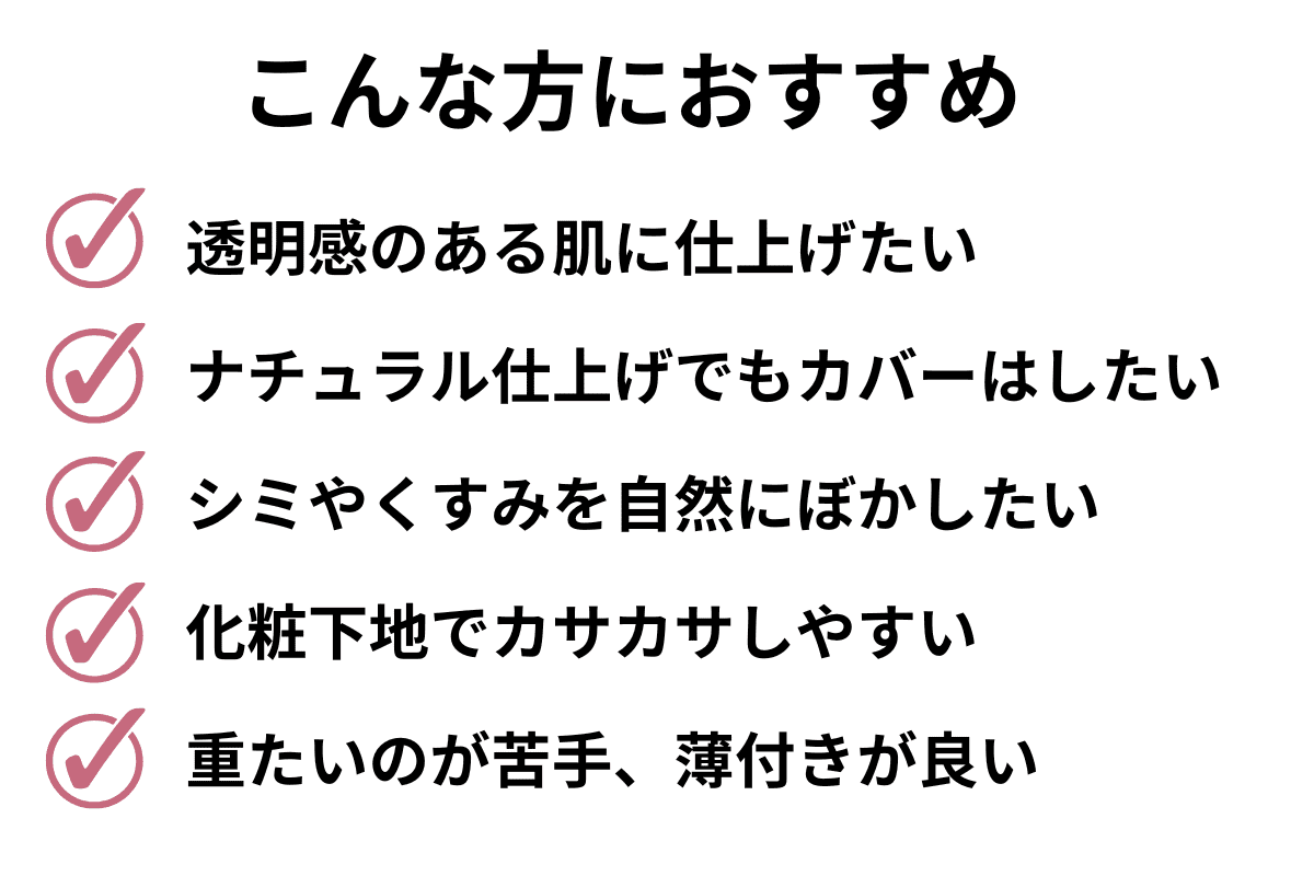 成分 シクロペンタシロキサン、水、酸化チタン、イソノナン酸イソトリデシル、酸化亜鉛、マイカ、ジフェニルシロキシフェニルトリメチコン、プロパンジオール、PEG-10ジメチコン、BG、PEG-3ジメチコン、オレイン酸グリセリン、グリセリン、トリエチルヘキサノイン、ペンチレングリコール、ジメチコン、水酸化Al、加水分解コラーゲン、ラウロイルリシン、ステアリン酸、ジエチルヘキサン酸ネオペンチルグリコール、ジグリセリン、トコフェロール、ポリソルベート60、ステアリン酸ソルビタン、(ジメチコン/ビニルジメチコン)クロスポリマー、ハイドロゲンジメチコン、フェノキシエタノール、ジミリスチン酸AI、(アクリレーツ/メタクリル酸ポリトリメチルシロキン)コポリマー