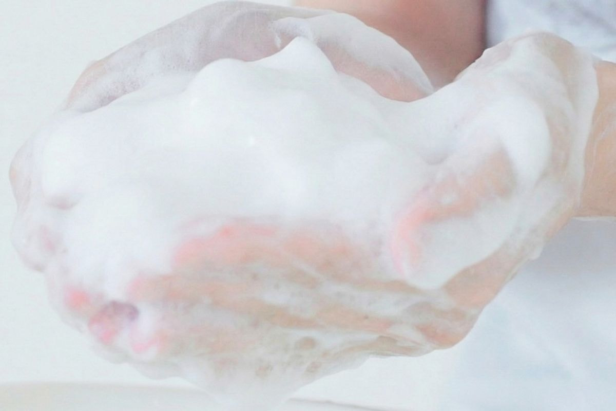 使い方 ①手を洗い、パウダーを約1g(500円玉2枚分)を手のひらにとり、洗顔ネットを使用し、ぬるま湯を少しずつ加えながら、空気を入れるように泡を立てます。(逆さにしても落ちない泡、ツノがたつくらいのホイップ状の泡が理想です。) ②手のひらを吸盤に見立て、泡を押さえるようにして汚れを泡に吸着させます。 ③ぬるま湯、または流水でやさしくすすぎます。30回を目標にすすぎましょう。