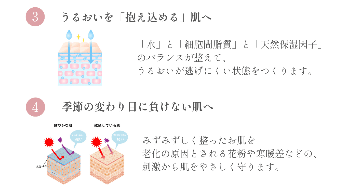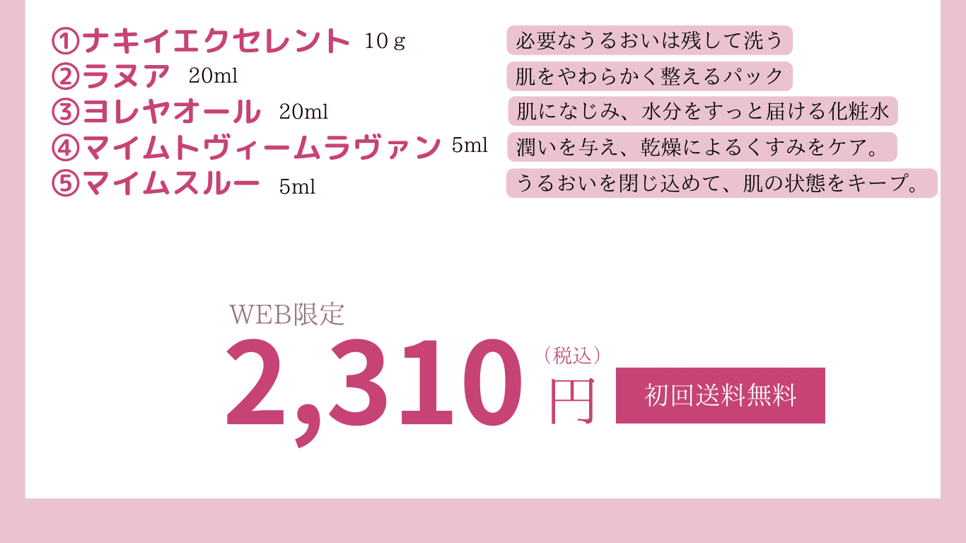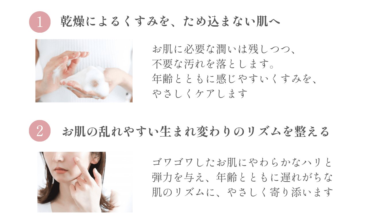 頬のくぼみやくすみが悩みでした。初めはトライアルセットにパックがついてる?!と驚きましたが、順に使ってみると、化粧水や美容液の馴染みが良い!使い始めて3ヶ月経ったころから、頬がふっくらし、パっと明るいツヤツヤした肌になりました。(45歳/女性/敏感肌)